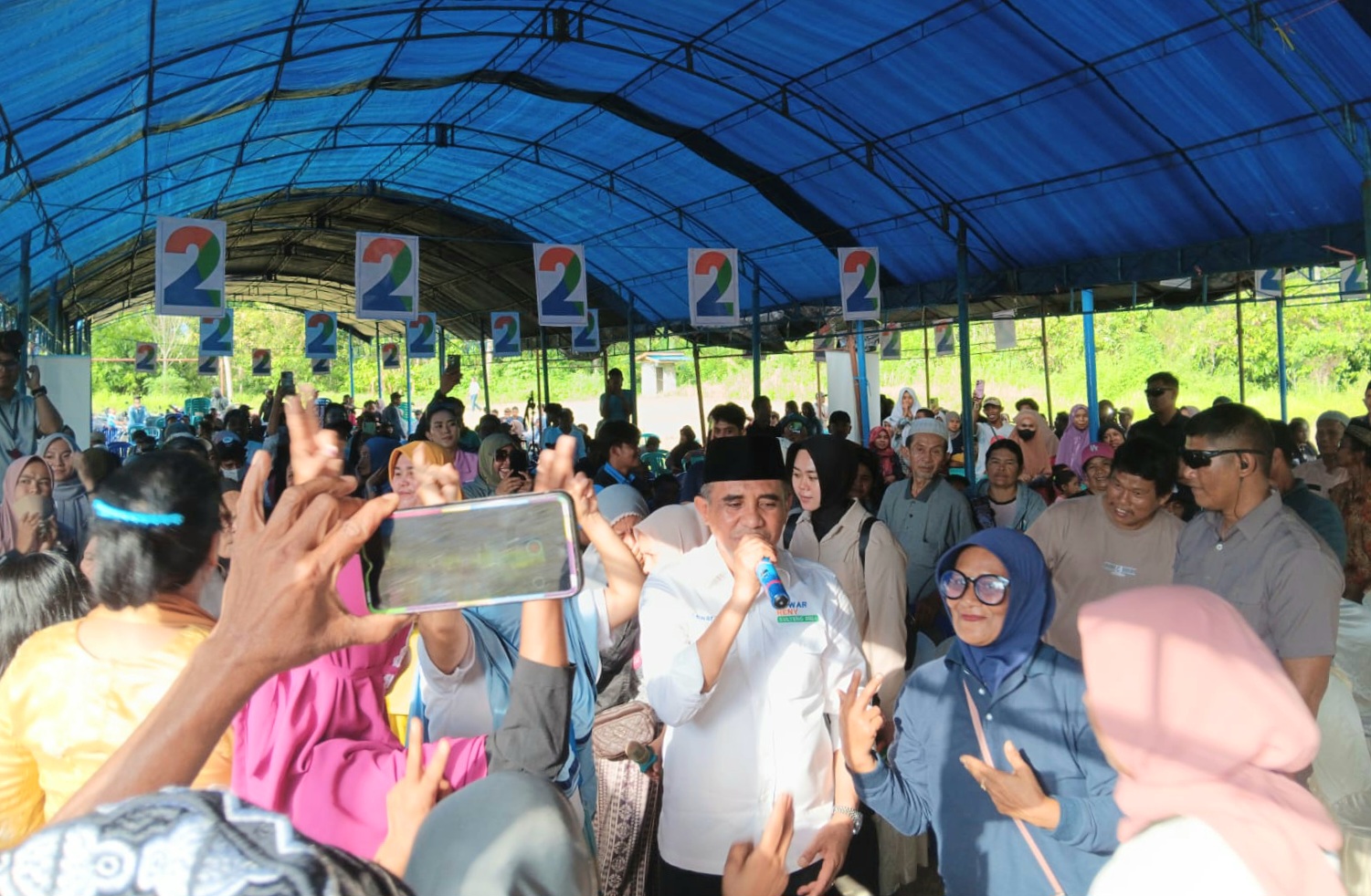Calon Gubernur dan Wakil Gubernur Sulawesi Tengah, nomor urut 2, Anwar Hafid – Reny Lamadjido melalukan temu masyarakat di Desa Karunia, Kecamatan Palolo, Kabupaten Sigi, Jumat, 27 September 2024.