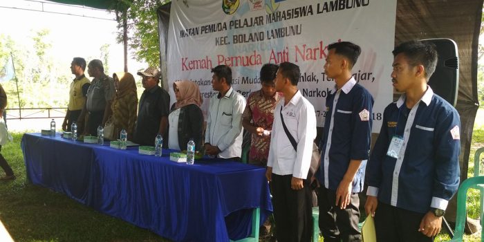 Pembukaan kemah pemuda anti narkoba, ikut dihadiri oleh, Iptu Aris Rangan selaku Kasat Binmas polres Parimo, Camat Bolano Lambunu dan Kepala Desa di Kecamatan Bolano Lambunu. Kemah pemuda anti narkoba ini bertemakan “Menciptakan generasi muda yang berahlak, berprestasi tanpa narkoba” yang diikuti 300 orang pemuda sekecamatan Bolano Lambunu, dari berbagai desa, sekolah dan komunitas – komunitas motor, juga photografer.