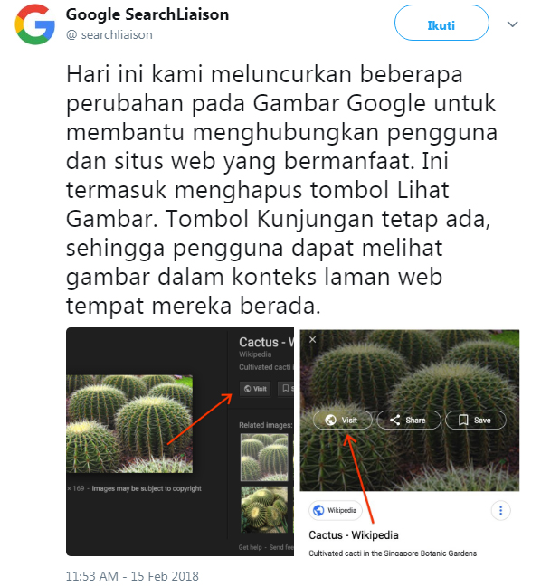 Namun, meski dihapusnya tombol ini dari Google, kamu masih tetap dapat mengunjungi sumber gambar dengan tombol kunjungan (visit) yang tersisa.