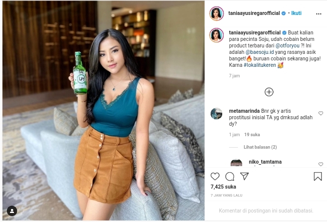 Akibat pemberitaan tersebut, netizen kini ramai menyerbu kolom komentar Instagram Tania. Unggahan terakhir Tania yang tampil seksi saat mempromosikan sebuah produk soju diserbu netizen yang mempertanyakan kebenaran tentang sosok TA yang sedang ramai diperbincangkan.