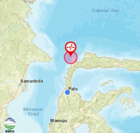 BMKG menyebutkan, bahwa episenter gempa di koordinat 1.22 Lintang Utara (LU) dan 119.94 BT Bujur Timur (BT).