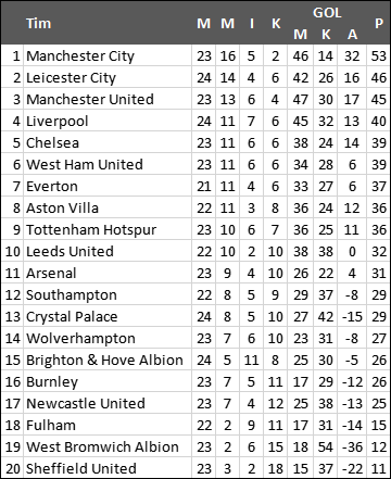 City unggul tujuh poin atas Leicester City (46), yang menyodok ke posisi kedua klasemen, setelah mempecundangi juara bertahan Liverpool (40) dengan skor 3-1 dalam laga lebih dini.