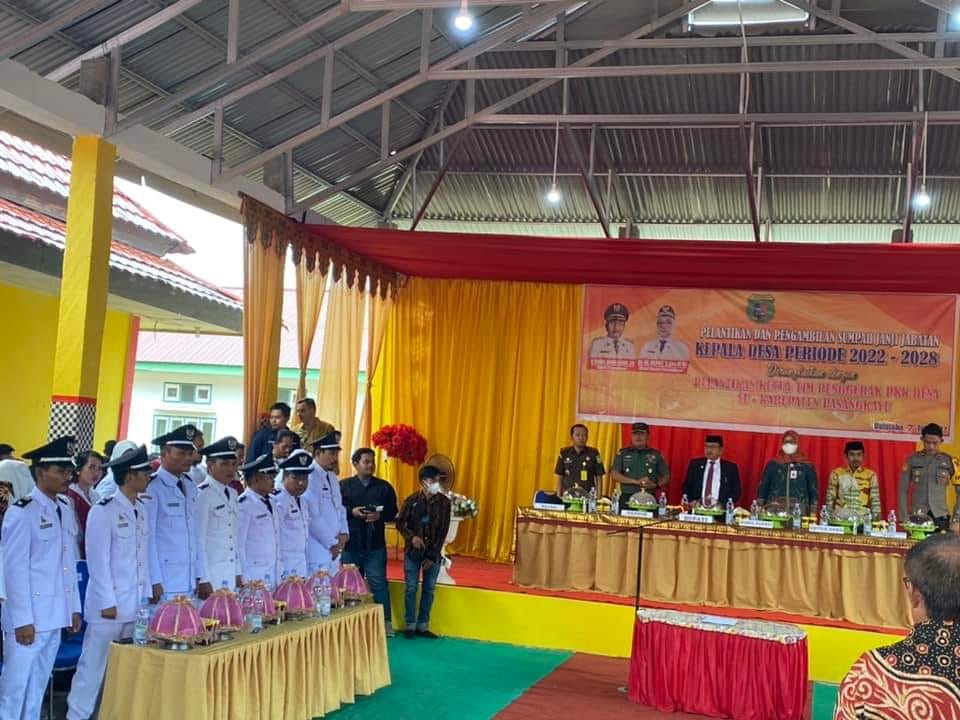 Pelantikan dan pengambilan sumpah jabatan berlangsung di ruang pola kantor bupati, Senin 13 Juni 2022.