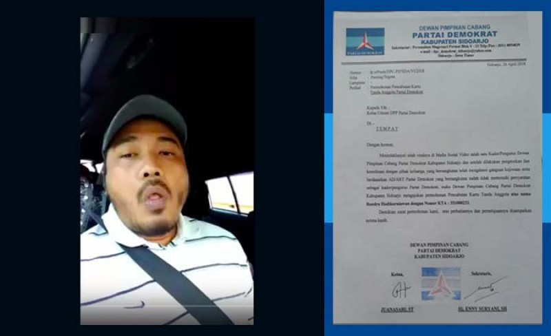 “DPP yang berwenang mencabut keanggotaan kader. DPC Partai Demokrat Kabupaten Sidoarjo dan DPD Partai Demokrat Jatim telah menyerahkan kasus ini ke DPP. Yang bersangkutan memang mengalami gangguan kejiwaan, atas informasi keluarganya,” kata Sekretaris DPD PD Jatim Renville Antonio dikonfirmasi beritajatim.com, Kamis (26/4/2018).
