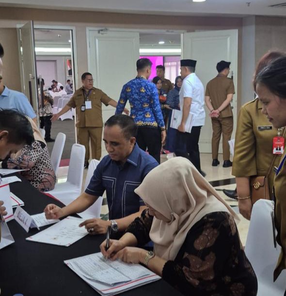 Gubernur dan Wakil Gubernur terpilih didampingi oleh Imelda Sormin, Direktur Evaluasi Kinerja dan Peningkatan Kapasitas Daerah di Kemendagri, selama proses pemeriksaan.