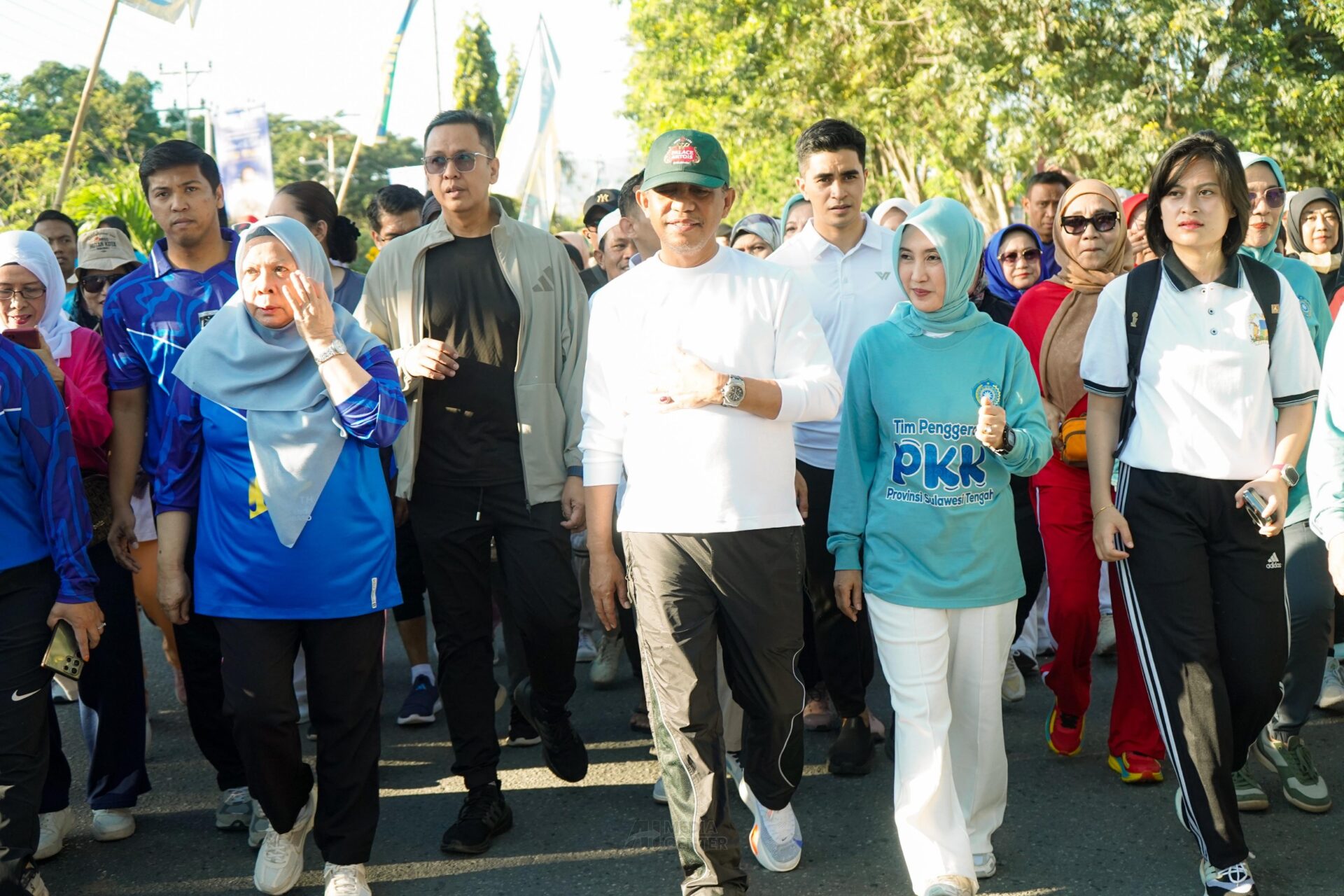 Gubernur Sulawesi Tengah, Anwar Hafid, didampingi Wakil Gubernur dr. Reny A. Lamadjido, Sekretaris Daerah Novalina, dan Ketua TP-PKK Sry Nirwanti Bahasoan, memimpin langsung pelepasan peserta jalan santai.
