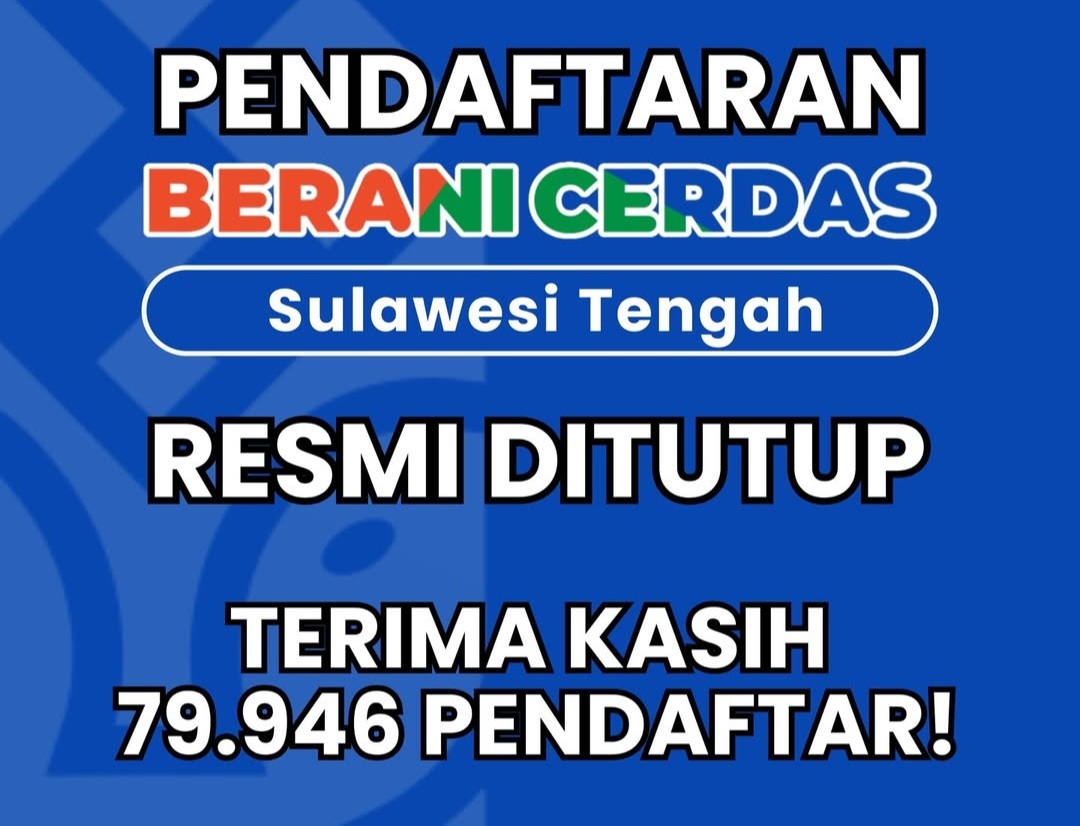 Pendaftaran Program Berani Cerdas di Sulawesi Tengah resmi ditutup. Sebanyak 79.946 peserta tercatat telah bergabung dalam program ini, menunjukkan antusiasme luar biasa dari masyarakat.