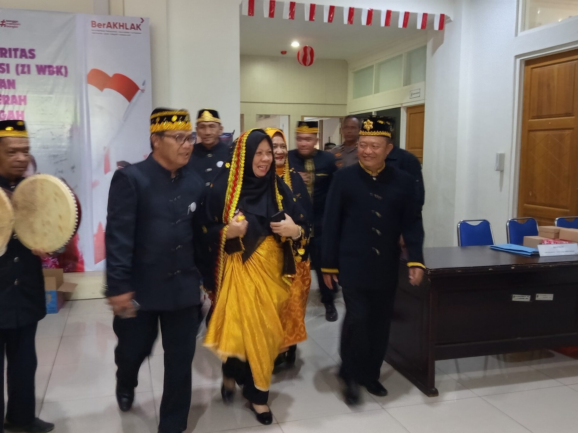 “Terima kasih saya sudah diterima dengan menggunakan baju adat. Saya merasa seperti berada di tengah keluarga besar saya sendiri,” katanya, yang disambut tepuk tangan hangat para hadirin.