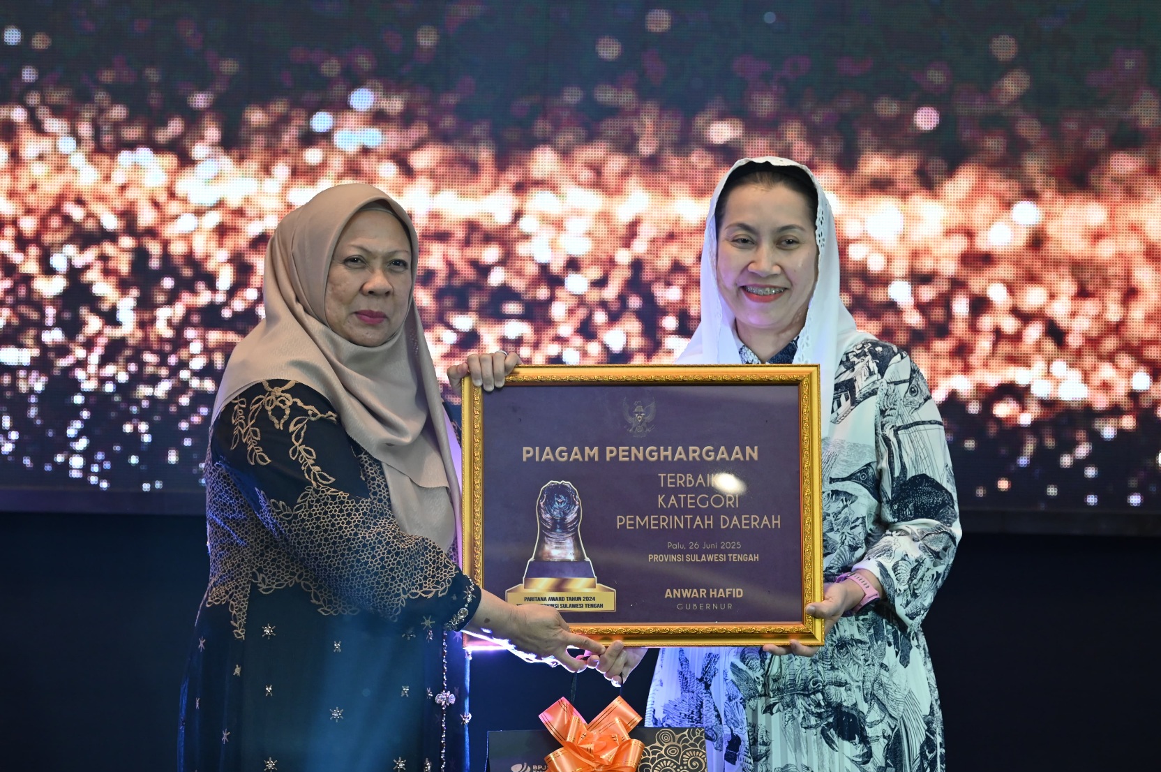 Sorotan utama tertuju pada momen penyerahan penghargaan oleh Wakil Gubernur Sulteng dr. Reny A. Lamadjido, Sp.PK., M.Kes kepada Wakil Wali Kota Palu, Imelda Liliana Muhidin, S.E., M.A.P., yang mewakili Pemerintah Kota Palu sebagai peraih predikat terbaik pertama kategori pemerintah kabupaten/kota.
