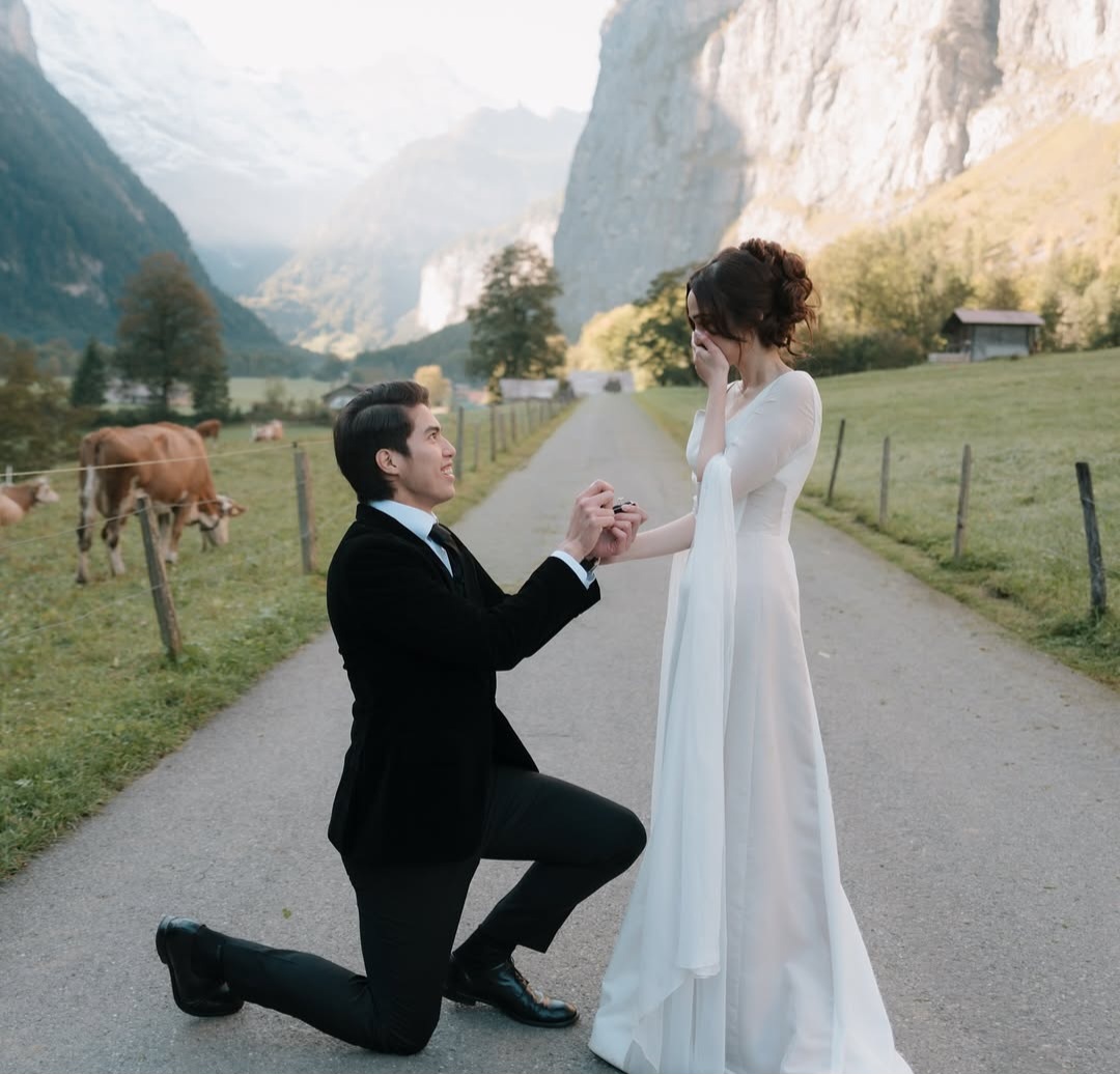 Momen lamaran berlangsung di desa Lauterbrunnen, Pegunungan Alpen, tempat yang indah dan tenang, seolah menjadi simbol akhir perjalanan panjang El dalam menemukan cinta sejatinya.