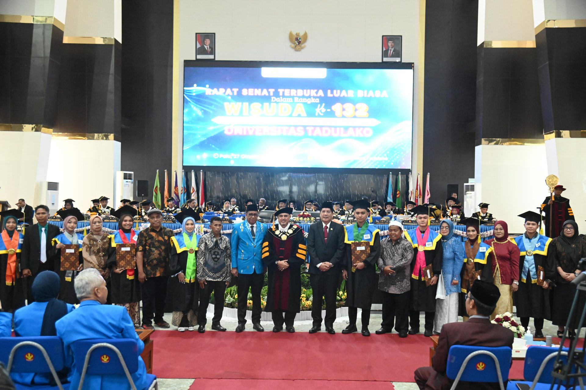 Sementara itu, Gubernur Sulteng diwakili oleh Asisten I Bidang Pemerintahan dan Kesra Pemprov Sulteng, Dr. Fahrudin Yambas, M.Si. Hadir pula Rektor Untad Prof. Dr. Ir. Amar, ST., MT., IPU., ASEAN Eng, Ketua Senat, para guru besar, dekan, orang tua, dan tamu undangan.