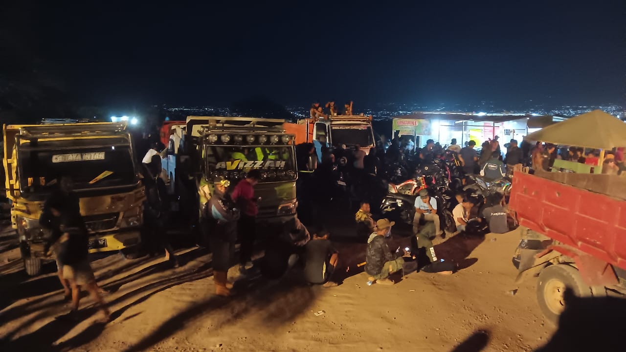 Pantauan di lokasi pra kondisi menunjukkan barisan truk tambang terparkir rapat, diterangi lampu kendaraan serta cahaya warung darurat di pinggir jalan. Sejumlah penambang terlihat duduk di tanah, sebagian bersandar di kendaraan, berdiskusi sambil menunggu waktu. Di tengah gelapnya malam, kebersamaan antarpenambang tampak kuat, menggambarkan denyut kehidupan ribuan keluarga yang selama ini menggantungkan hidup dari tambang rakyat Poboya.