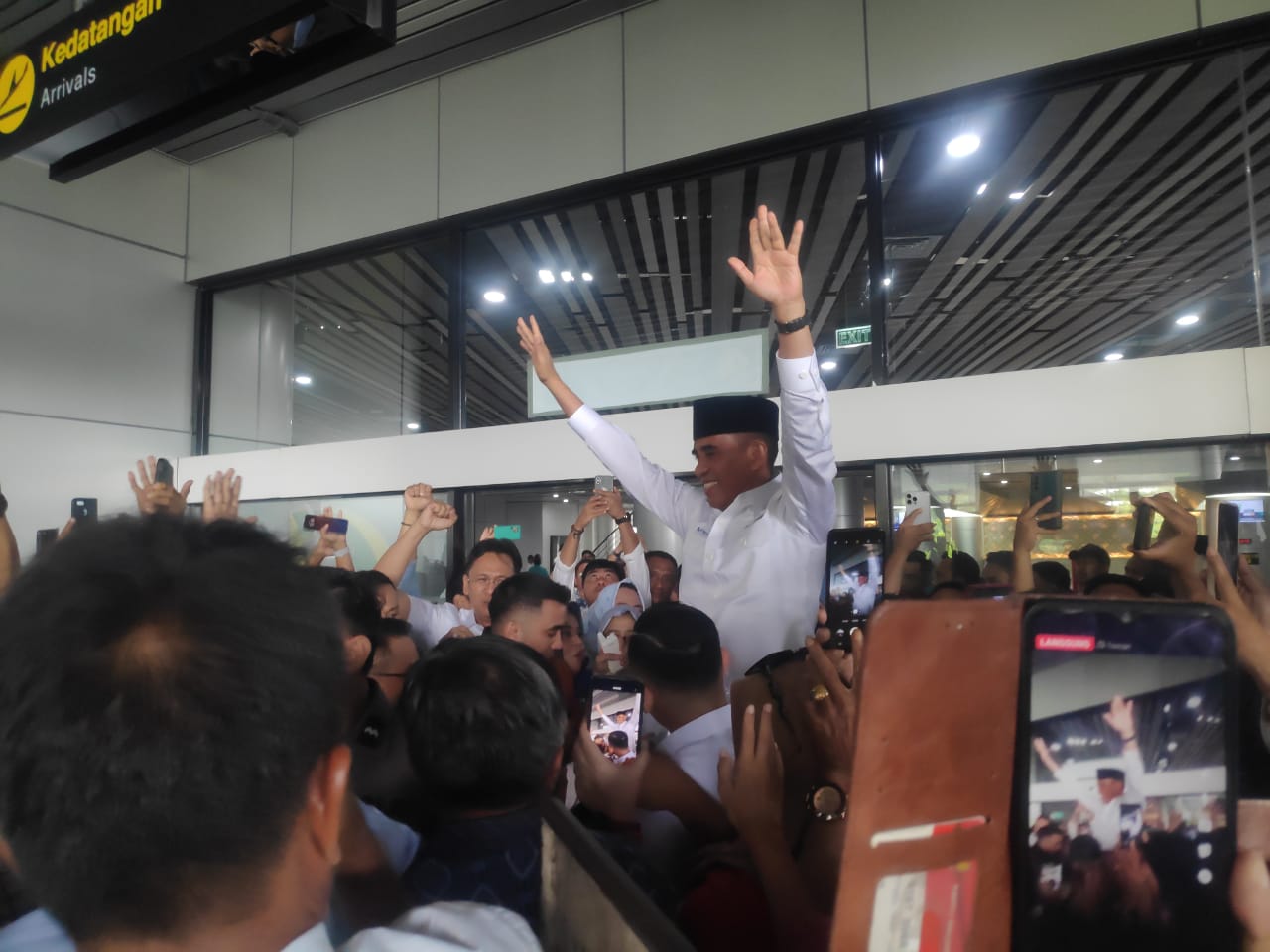 Ribuan Relawan Sambut Anwar Hafid dan Reny Lamadjido di Bandara