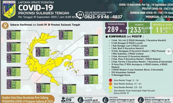 PALU – Total Jumlah positif Corona atau Covid-19 di Sulawesi Tengah per Selasa, 29 September