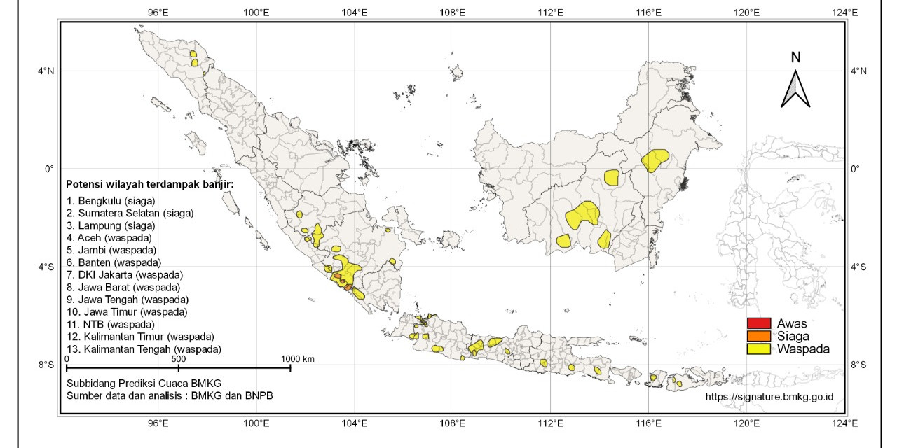 JAKARTA – Pemerintah daerah di tingkat provinsi patut mewaspadai dampak hujan lebat di