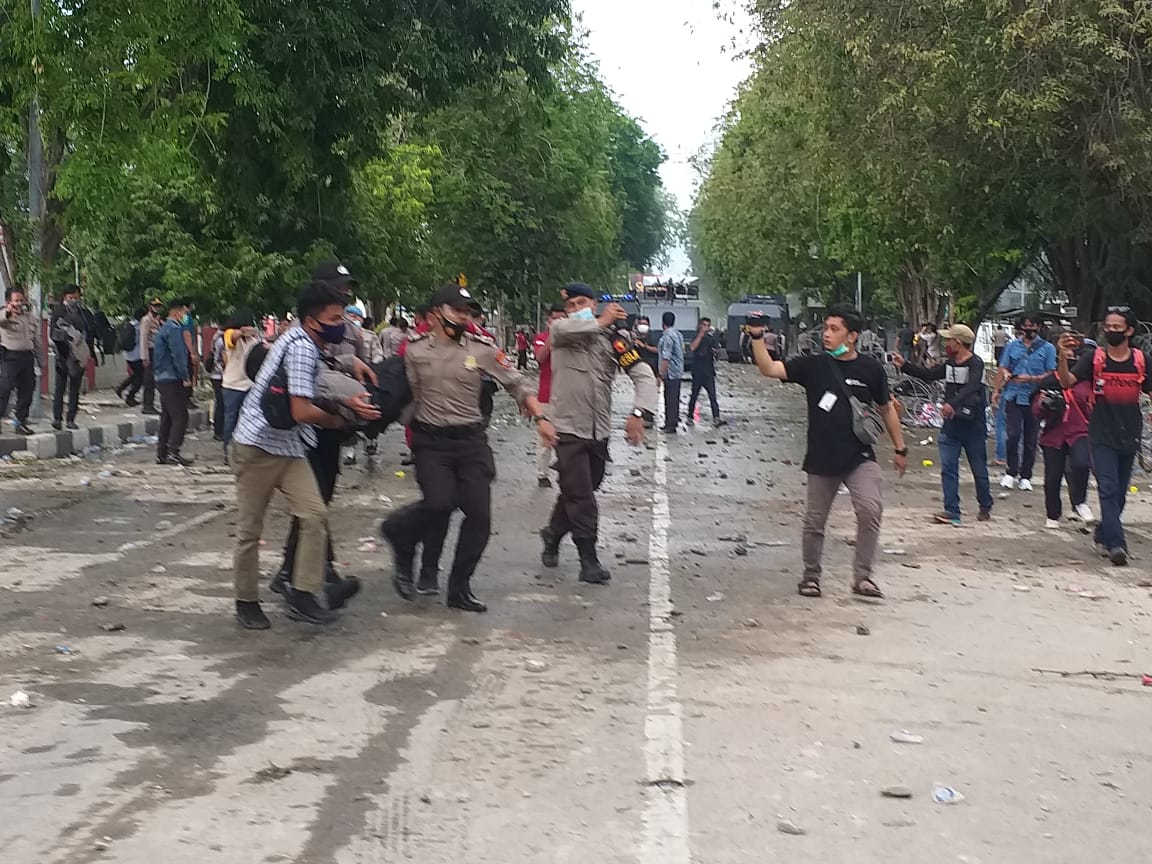 Demo Mahasiswa Tolak UU Ciptaker di Palu Ricuh