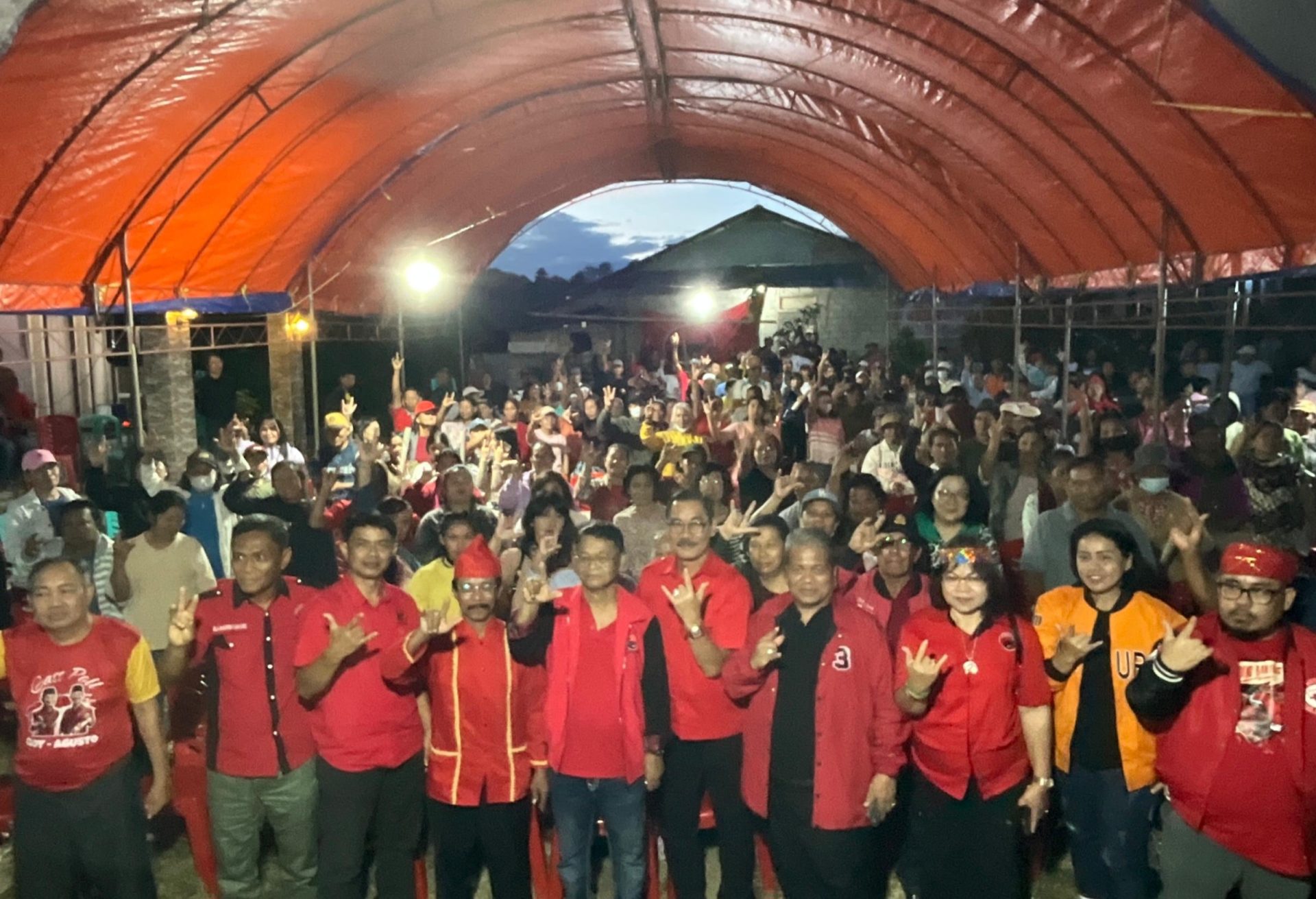 Di desa itu, kampanye tertutup sekira 500 warga mendengar kampanye masing masing ketua partai politik. Hadir Ketua Koalisi dari PDIP Muharram Nurdin. Ada dari Hanura Frits Sam dan pengurus parpol lainnya. Tim koalisi parpol juga nampak Devisi kampanye Yos Sudarso dan Devisi IT media Angga Rumu.