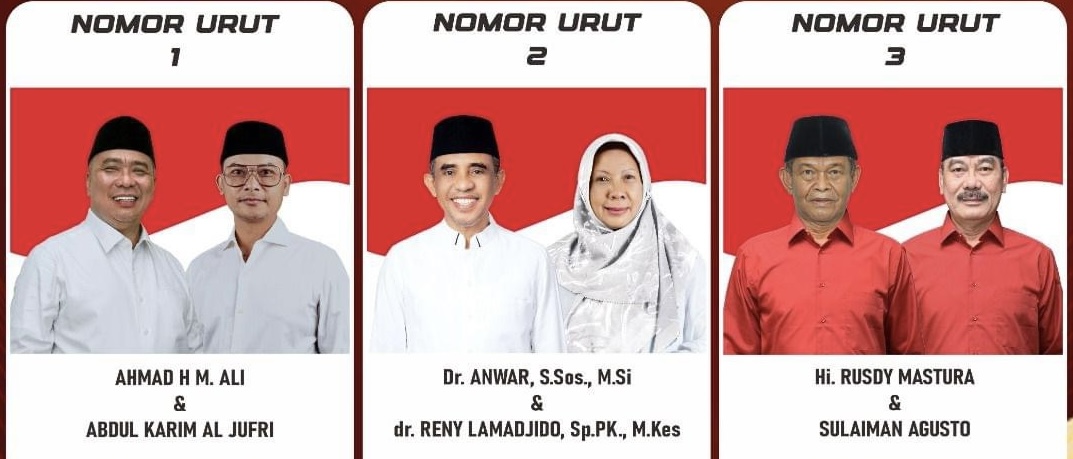 Paslon no.2 dengan tagline BERANI (BERSAMA Anwar – RenI/y), bersaing ketat dengan pasangan petahana Rusdy Mastura-Sulaiman Agusto Hambuako dengan survei 28,38 dan Ahmad Ali – Abdul Karim Al Jufri berada pada angkat survei 26,38 persen.