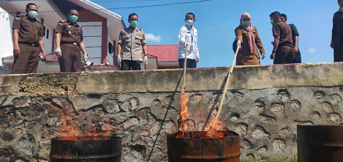 PALU – Kejaksaan Negeri (Kejari) Palu memusnahkan barang bukti (babuk) berupa sabu seberat