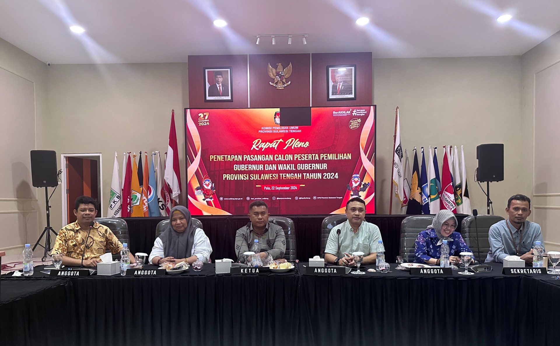 KPU Sulawesi Tengah telah menetapkan tiga pasangan calon gubernur dan wakil gubernur pada Pemilihan